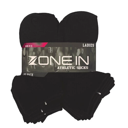 Zone InΒ Ladies Lowcut Socks – 20-Pack